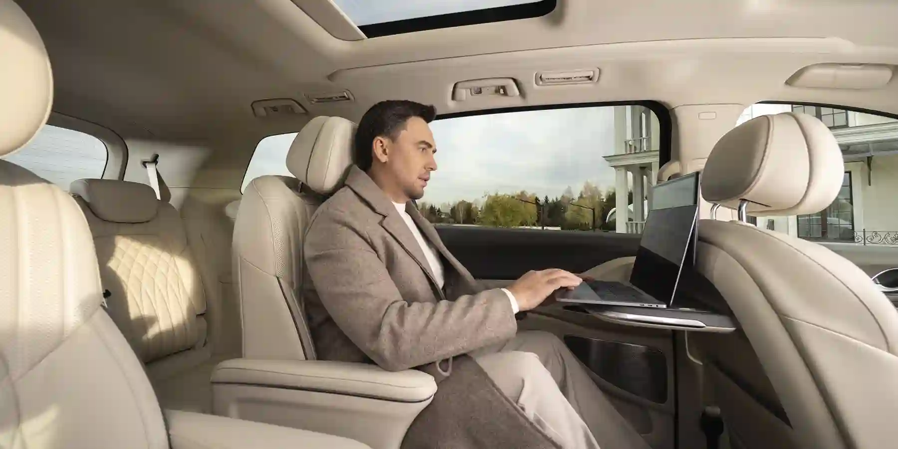 «Руль», к слову, оказался очень важной составляющей всего проекта, без должного комфорта на длинных перегонах невозможно было бы ни отдохнуть, ни поработать. От тягот дороги спасали кресла Zero Gravity в VOYAH Dream с большими подголовниками, подставками для ног, с массажем, подогревом и вентиляцией. Можно было и поспать, благо сиденья, как в бизнес-классе, раскладываются практически «в пол», а работа электромоторов и прекрасная шумоизоляция (двойные стекла!) сохраняли практически полную тишину. Когда же приходило время работать, настроиться помогали специальные кармашки для смартфонов, раскладывающиеся столики и четыре USB-разъема. Комфортную атмосферу создавал и трехзонный климат-контроль с фильтром очистки и ионизацией воздуха. Клавиши, кстати, не физические — управляет всеми функциями целый командный центр с тремя 12,3-дюймовыми мультимедийными дисплеями.