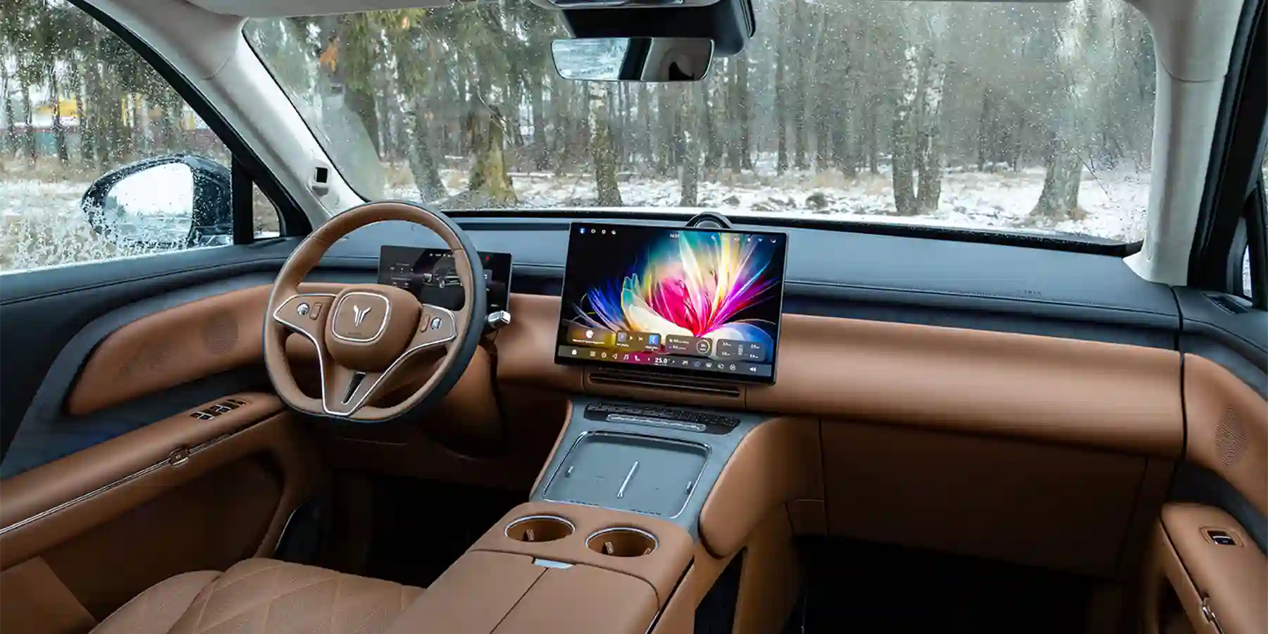 На каждом колесе — своя пневмоподушка с тремя раздельными камерами, как на Bentley Continental GT. Можно принудительно зажать подвеску в «спорт», а можно — приподнять в диапазоне до 110 мм для преодоления неровных участков. На практике обычно вообще не нужно что-либо менять: VOYAH TAISHAN самостоятельно сканирует дорогу, превентивно подстраивая жесткость «пневмы» под конкретные условия в режиме онлайн. Ни скоростные виражи, ни колеи, ни ямы почти не сказываются на плавности хода и на устойчивости брутального исполина.